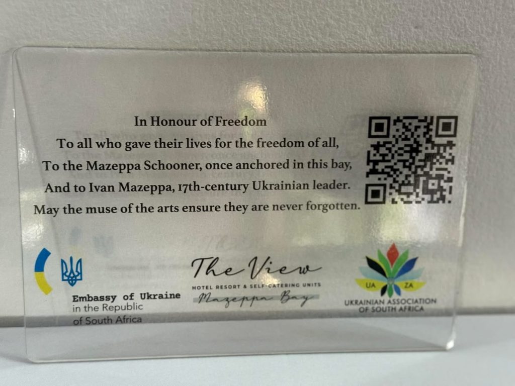 UAZA is proud to have partnered with the Embassy of Ukraine in South Africa and The View Mazeppa Bay Hotel, together with the local community, to realise this project. It stands as a symbol of friendship, history, and the shared struggles for dignity and independence.