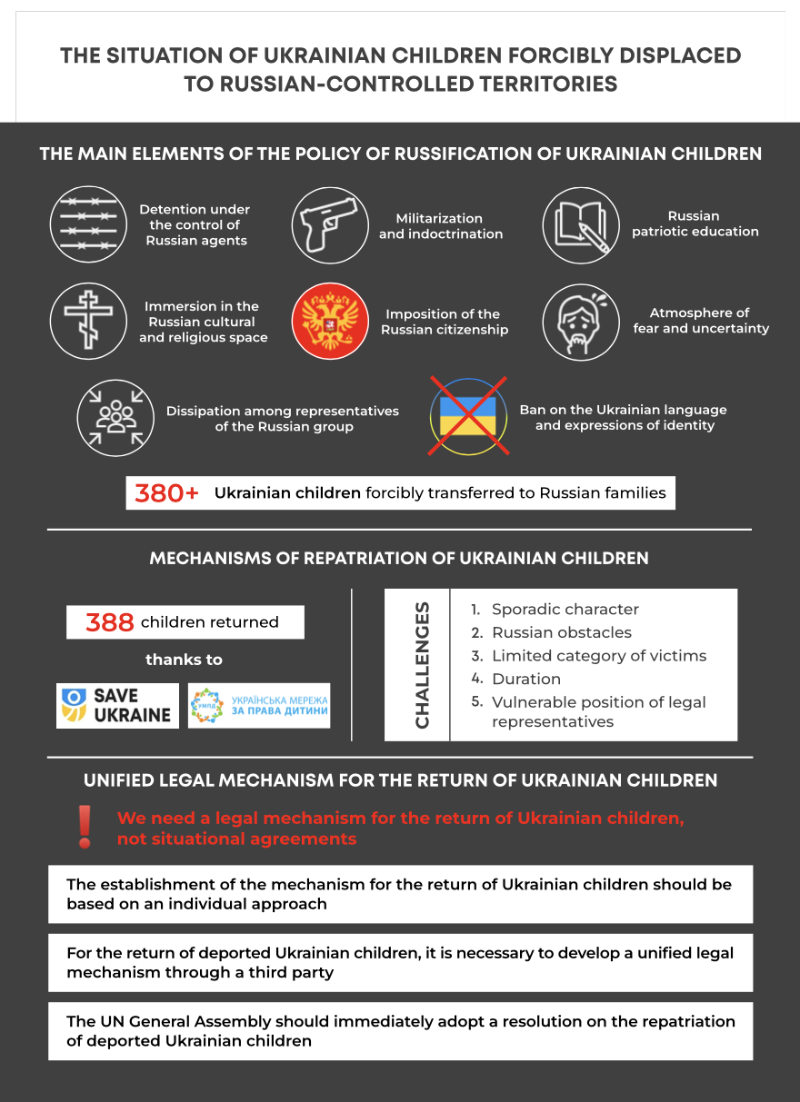 Ukrainian Government has identified 19,546 of those children; however, their whereabouts in Russia remain unknown. For now only near 388 minors were successfully returned.